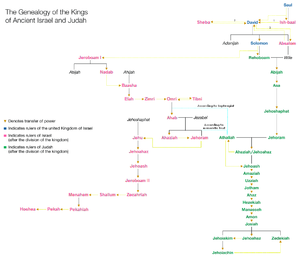 According to Jewish tradition the author of Kings was Jeremiah, who would have been alive during the fall of Jerusalem in 586 BCE.[6] The most common view today accepts Martin Noth's thesis that Kings concludes a unified series of books which reflect the language and theology of the Book of Deuteronomy, and which biblical scholars therefore call the Deuteronomistic history.[7] Noth argued that the History was the work of a single individual living in the 6th century BCE, but scholars today tend to treat it as made up of at least two layers,[8] a first edition from the time of Josiah (late 7th century BCE), promoting Josiah's religious reforms and the need for repentance, and (2) a second and final edition from the mid-6th century BCE.[9][10] Further levels of editing have also been proposed, including: a late 8th century BCE edition pointing to Hezekiah of Judah as the model for kingship; an earlier 8th-century BCE version with a similar message but identifying Jehu of Israel as the ideal king; and an even earlier version promoting the House of David as the key to national well-being.[11]