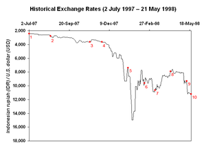 - ^ "Indonesia Floats the Rupiah, And It Drops More Than 6%". The New York Times. 15 August 1997. p. D6. Retrieved 25 September 2009.