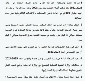 تقرير:مصر تستعد لتشغيل أو قطار سكة حديد في سيناء منذ 1956 (سبتمبر 2023) |