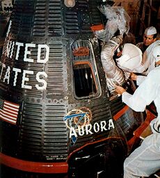 The following year, Carpenter was selected as one of the Mercury Seven astronauts. He was backup to Glenn during the latter's Mercury Atlas 6 orbital mission. Carpenter flew the next mission, Mercury-Atlas 7, in the spacecraft he named Aurora 7. Due to a series of malfunctions, the spacecraft landed 250 ميل (400 km) downrange from its intended splashdown point, but both pilot and spacecraft were retrieved.