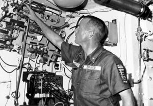 Carpenter returned to NASA as Executive Assistant to the Director of the Manned Spacecraft Center, then joined the Navy's Deep Submergence Systems Project based in Bethesda, Maryland, as a Director of Aquanaut Operations for SEALAB III in 1967.[64] In the aftermath of aquanaut Berry L. Cannon's death while attempting to repair a leak in SEALAB III, Carpenter volunteered to dive down to SEALAB and help return it to the surface, although SEALAB was ultimately salvaged in a less hazardous way.[68]
