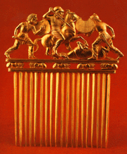 The Hermitage Museum has preserved by far the greatest collection of Scythian gold, including one of the most famous of all Scythian finds: the golden comb, featuring a battle-scene, from the 4th century Solokha royal burial mound.