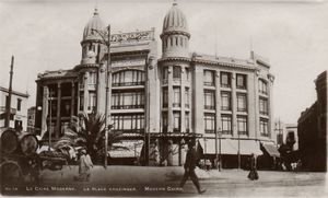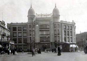 في قلب ميدان «الخازندار» بحى الموسكي، شيد الأخوان السوريان سليم وسمعان صيدناوي (وهم من طائفة الروم الكاثوليك)،[1] المبنى الذي يحمل اسمهما على مساحة تبلغ 8530 متراً ليكون صرحا تجاريا ضخما بارتفاع 4 طوابق، وكان متخصصا في بيع الأقمشة، والمنسوجات المصرية الصنع، والتي كانت تصنع في الورش المملوكة لهما، وكانت المساحة المسطحة للطابق الواحد تبلغ حوالى 1700 متر.