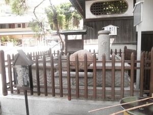 On one of their adventures, Sukuna became ill. They went to the Dōgo hot springs. Ōkuninushi put Sukuna-biko in the hot spring water to revive him. Sukuna hikona then took a nap. When he awoke, he was cured, and Sukuna danced on a stone. His footprints left an impression on the rock, known as Tamanoishi, which remains in Dogo Onsen today north of the main building.