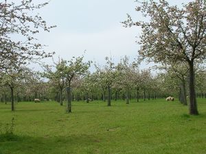 A traditional cider apple orchard at Over Stratton, with sheep grazing