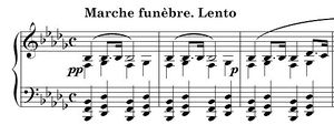 الحركة الثالثة من سوناتا الپيانو رقم 2 لشوپان هي اللحن الجنائزي (فرنسية: Marche funèbre) الذي تم تأليفه قبل سنتين على الأقل من بقية العمل وظل، وحده، واحداً من أشهر ألحان شوپان. يحمل سوناتا الپيانو رقم 2 تلميحات وذكريات من موسيقى باخ وسوناتا الپيانو رقم 12 لبيتهوڤن، التي تحتوي أيضاً على موسيقى جنائزية بحركاتها الثلاث. يستمر الأداء النموذجي للسوناتا الثانية لشوپان ما بين 21 و25 دقيقة، اعتماداً ملاحظة عرض تكرار الحركة الأولى.