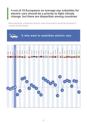 وجد استطلاع عام 2022 أن 33% من مشتري السيارات في أوروپا سيختارون سيارة تعمل بالگازولين أو الديزل عند شراء سيارة جديدة. ذكر 67% من المشاركين اختيار النسخة الهجينة أو الكهربائية.[97][98] وبشكل أكثر تحديدًا، وجدت أن السيارات الكهربائية مفضلة لدى 28% فقط من الأوروپيين، مما يجعلها أقل أنواع السيارات تفضيلاً. يميل 39% من الأوروپيين إلى تفضيل المركبات الهجينة، بينما يفضل 33% المركبات التي تعمل بالگازولين أو الديزل.[97][99]