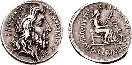 - ^ A plebeian aedile, C. Memmius, claims credit for Ceres' first ludi scaeneci. He celebrated the event with the dole of a new commemorative denarius; his claim to have given "the first Cerealia" represents this innovation. See Spaeth, 1996, p. 88.