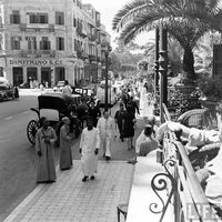 شارع إبراهيم باشا سابقاً (شارع الجمهورية حالياً)، أمام فندق شبرد السابق، أعظم فنادق الشرق حينذاك، وأكثر فندق في التاريخ نزل فيه أهم الشخصيات في العالم منذ منتصف القرن التاسع عشر وحتى عام 1952. تم تأسيسه في فترة 1840 بإسم "الفندق الإنجليزي"، ثم أُعيدت تسميته إلى "شبرد" عام 1860 على إسم مالكه صامويل شبرد.