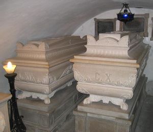 The remains of Charles X are in a crypt with that of the other members of the exiled French Royal Family. Above his tomb made of marble, there is a black stone on which is inscribed: