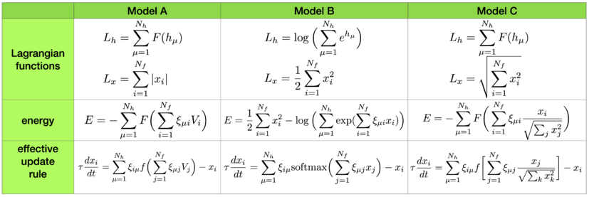 A major advance in memory storage capacity was developed by Krotov and Hopfield in 2016[20] through a change in network dynamics and energy function. This idea was further extended by Demircigil and collaborators in 2017.[21] The continuous dynamics of large memory capacity models was developed in a series of papers between 2016 and 2020.[20][22][23] Large memory storage capacity Hopfield Networks are now called Dense Associative Memories or modern Hopfield networks.