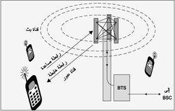 ـ محطة قاعدية BS وتتألف من مرسل ومستقبل راديوي يُستخدم لإرسال الإشارات واستقبالها من المحطات النقالة وإليها.