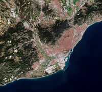 By 1600, the percentage of urban population for Spain was roughly 11.4%, while for Portugal the urban population was estimated as 14.1%, which were both above the 7.6% European average of the time (edged only by the Low Countries and the Italian Peninsula).[135] Some striking differences appeared among the different Iberian realms. Castile, extending across a 60% of the territory of the peninsula and having 80% of the population was a rather urbanised country, yet with a widespread distribution of cities.[136] Meanwhile, the urban population in the Crown of Aragon was highly concentrated in a handful of cities: Zaragoza (Kingdom of Aragon), Barcelona (Principality of Catalonia), and, to a lesser extent in the Kingdom of Valencia, in Valencia, Alicante and Orihuela.[136] The case of Portugal presented an hypertrophied capital, Lisbon (which greatly increased its population during the 16th century, from 56,000 to 60,000 inhabitants by 1527, to roughly 120,000 by the third quarter of the century) with its demographic dynamism stimulated by the Asian trade,[137] followed at great distance by Porto and Évora (both roughly accounting for 12,500 inhabitants).[138] Throughout most of the 16th century, both Lisbon and Seville were among the Western Europe's largest and most dynamic cities.[139]