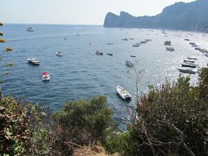 The peninsula is named after its main town, Sorrento, which is located on the north (Gulf of Naples) coast. The Amalfi Coast is located on the southern side.[1] The Lattari Mountains form the geographical backbone of the peninsula. The island of Capri lies off the western tip of the peninsula in the Tyrrhenian Sea. The whole area is an important tourist destination.[2]
