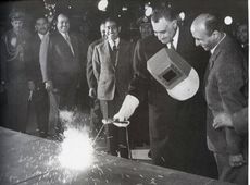 وفى 23 يوليو 1955 قام عبدالناصر مع أعضاء مجلس قيادة الثورة بوضع حجر الأساس الأول للمشروع على مساحة تزيد على 2500 فدان شاملة المصانع والمدينة السكنية التابعة لها والمسجد الملحق بها، بعد توقيع العقد مع شركة ديماگ دويسبرگ الألمانية (ألمانيا الشرقية آنذاك) لإنشاء المصانع وتقديم الخبرات الفنية اللازمة.