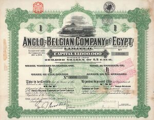 - ^ Historische Aktie der Fayoum Light Railways Company, ausgeben am 1. Oktober 1899 und am 1. Mai 1944 bestempelt.