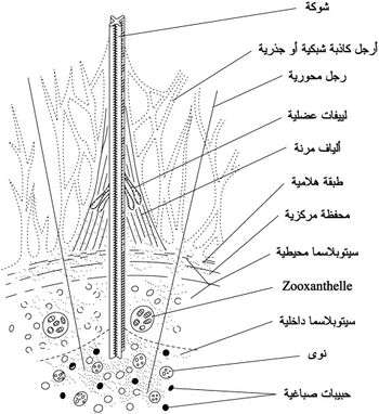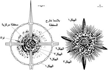 يتألف هيكل الشائكات من 10ـ20 شوكة سيليسية تنطلق من نقطة مركزية، وتحتوي على مواد عضوية ومعدنية معقدة، وقد تعطي تشكلات جانبية يمكن أن تتداخل فيما بينها وتلتحم لدرجة يمكن أن تشكل نمطاً من قوقعة أو قشرة شبكية.