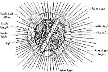 جسمها كروي، يتألف من سيتوبلاسما داخلية تحوي فجوات وقطرات زيتية وعدة نوى. وتتمايز فيها مايشبه المحفظة المركزية غير المثقبة، تحيط بها سيتوبلاسما خارجية، محاطة بدورها بطبقة هلامية،تحوي أليافاً مرنة وأخرى عضلية، تُكَوِّن بمجموعها تشكلات تقلصية خاصة تربط الأشواك بالطبقة الهلامية لتشكلا معاً مايسمى بجهاز التوازن المائي المميز للشائكات، الذي يؤمن، في حال انقباضه وانتفاخه، تغيراً في الوزن النوعي للحيوان فيساعد في عومه أو غطسه. وتختلف الشائكات أيضاًعن الشعاعيات بوجود الأرجل المحورية axopodes، وهي أرجل كاذبة يحتل محورها قضيب مكون من لييفات مرتبطة بالمريكز أو النوى، إضافة للأرجل الكاذبة الشعاعية الدقيقة ذات النهايات المتفاغمة لتشكل شبكات تساهم في اقتناص الفرائس وطرح الفضلات .