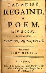صفحة العنوان من الفردوس المستعاد (1671)، والتي ظهرت فيها لأول مرة قصيدة شمشون المعذَب.