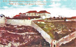In his letter of 1769 to the Russian diplomat Count P. Panin, the Georgian king Erekle II documented that "there was an 'ancient' fortress which was conquered, through deceit, by one man from the Muslim Jevanshir tribe."[10] The same information about the 'ancient' fortress is confirmed by the Russian Field Marshal Alexander Suvorov in his letter to Prince Grigory Potemkin.[25][26] Suvorov writes that the Armenian prince Melik Shahnazar of Varanda surrendered his fortress Shushikala to "certain Panah", whom he calls "chief of an unimportant part of nomadic Muslims living near the Karabakh borders."[27] When discussing Karabakh and Shusha in the 18th century, the Russian diplomat and historian S. M. Bronevskiy (Russian: С. М. Броневский (1763-1830) implied in his Historical Notes that Shusha was a possession of the Melik-Shahnazarian clan.[28] Russian historian P. G. Butkov (Russian: П. Г. Бутков (1775-1857) confirms this.[29][30] Joseph Wolff, during his mission in the Middle East, visited "Shushee, in the province of Carabagh, in Armenia Major".[31]