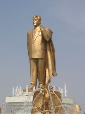 قوس الحياد في عشق آباد يعلوه تمثال مطلي بالذهب لتركمانباشي، يدور 360 درجة كل 24 ساعة لكي يواجه الشمس. (وفي يناير 2010، أمر الرئيس الجديد، الذي يقال أنه ابنه غير الشرعي، بازالة التمثال حتى لا يظن الناس أنه عبادة للفرد.) [2]
