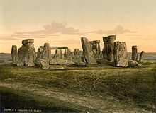 المرحلة الأولى، والأقدم، تعود إلى نهاية الألف الرابع وبداية الألف الثالث ق.م، إليها ينسب بناء دائري، قطره 100م، ضم منشآت مختلفة من الخشب، له مدخل كبير تم تعديله لاحقاً، ينتصب على جانبيه عمودان حجريان ضخمان Heel Stone. في المرحلة الثانية، نحو منتصف الألف الثالث ق.م، حفر على مدار البناء 56حفرة، أطلق عليها اسم حفر أوبري Aubrey Holes، نسبة إلى اسم الشخص الذي كشف هذا الموقع في القرن السابع عشر ميلادي، لقد تنوع استخدام هذه الحفر من قواعد أعمدة إلى حفر تخزين، وأخيراً استخدمت حفراً للدفن. في المرحلة الثالثة للبناء، في النصف الأول من الألف الثاني ق.م، أهمل البناء الخشبي، وأقيمت منشأة حجرية كبيرة استخدمت في بنائها أحجار جلبت من مسافة 150ـ300كم، وبلغت أوزانها عدة أطنان سميت الأحجار الزرقاء Blue Stones، تؤدي إلى هذه المنشأة الحجرية طريق طويلة (500م)، رصفت بالأحجار، وتوجهت باتجاه شروق الشمس، مما جعل بعضهم يعتقد أن هذا البناء معبدٌ لإله الشمس أو ماشابه ذلك.