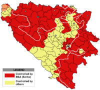 Representatives of main political parties and some other national organisations and institutions of Serb people in Bosnia and Herzegovina met on 13 October 1990 in Banja Luka and formed the 'Serbian National Council of Bosnia and Herzegovina' as a Serb political body.[38] In a session on 14–15 October 1991, the People's Assembly of Bosnia and Herzegovina, then part of the Socialist Federal Republic of Yugoslavia, approved the 'Memorandum on Sovereignty', as had already been done by Slovenia and Croatia, as a way to proclaim independence from the rest of Yugoslavia. The memorandum was adopted despite opposition from 83 Serb deputies belonging to the Serb Democratic Party (most of the Serb parliamentary representatives) as well as the Serbian Renewal Movement and the Union of Reform Forces, who regarded the move as illegal.[39][40]