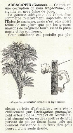 يتكون من قسم ذواب بالماء يعرف باسم التراغاكانثين وقسم لا ذواب بالماء ويعرف باسم باسورين، لهما أوزان جزيئية من رتبة 840000وكلاهما غير ذوابين في الكحول.