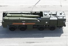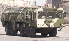 ![]() صواريخ إسكندر روسية على وحدة النقل والنصب والقذف 9پي78-1 في 2016. | |