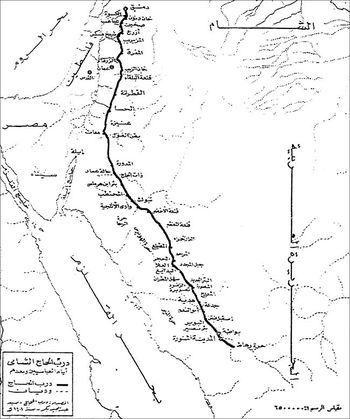 - ولكن هذه الفكرة سرعان ما عادت للظهور وذلك في عام 1880 عندما قدم وزير الأشغال العامة في الأستانة مشروعاً أوسع من السابق، إذ يقضي بمد خط حديدي من دمشق إلى الأراضي المقدسة وأيضاً هذا المشروع لم يجد صدى كالسابق وذلك بسبب الصعوبات المالية التي حالت دون تحقيقه من ناحية وسهولة المواصلات بالوسائط البحرية ورخصها من ناحية ثانية. وبقي هذا المشروع مهملاً .