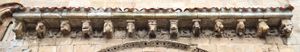 Norman (Romanesque) corbels often have a plain appearance,[1] although they may be elaborately carved with stylised heads of humans, animals or imaginary "beasts", and sometimes with other motifs (Kilpeck church in Herefordshire is a notable example, with 85 of its original 91 richly carved corbels still surviving).[4]