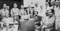 عبد الكريم قاسم وعبد السلام عارف مع ضباط وقياديين بعثيين
