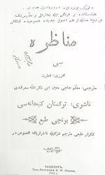 أشهر مؤلفاته كتابه «المناظرة» الذي طبع للمرة الأولى في اسطنبول سنة 1908، وأعيدت طباعته بالفارسية في طشقند سنة 1913 وترجم إلى الروسية في طشقند سنة 1911.