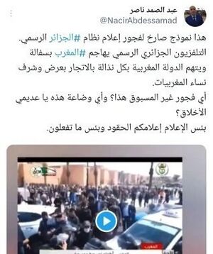 وإثر ذلك، أوضح البلاغ، اتصل به المدير العام للقناة واستقبله بمكتبه، وطالبه بحذف التغريدة أو تعديلها على الأقل بما لا يفهم منه إساءة إلى الدولة الجزائرية، وأنه في حالة الرفض سيكون مضطرا إلى اتخاذ إجراء إداري رادع؛ لكن عبد الصمد ناصر تمسك برفض التجاوب مع الطلب، والتأكيد على أن التغريدة تدخل في صميم ممارسة حرية التعبير في فضاء لا يعني قناة “الجزيرة” القطرية.