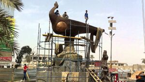 وتم إنجاز النصب البرونزي بطول 50 مترا ويضم 25 شخصية بالإضافة إلى الثور والحصان، ويعد أحد أكبر الأنصاب في العالم، خلال عامين في فلورنسا بإيطاليا ونُقل إلى بغداد عام 1961 بطائرة.