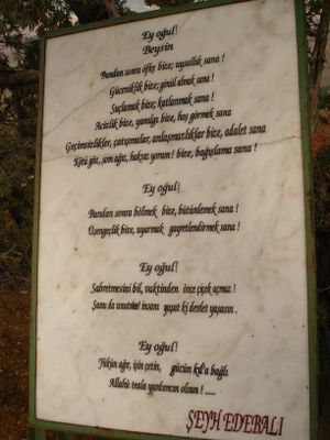 نصيحة الشيخ «إده بالي» إلى عُثمان الأوَّل، منقوشة باللُغة التُركيَّة على حجرٍ رُخاميّ.