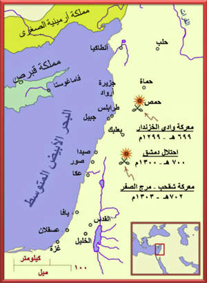 الأماكن التي صارت بها الحُروب المملوكيَّة المغوليَّة بما فيها معركة مرج الصفر (شقحب) التي وضعت حدًا لِأي تحالُفٍ بيزنطيّ مغوليّ ضدَّ العُثمانيين بعد أن أضعفت القُوَّة الميدانيَّة للمغول.