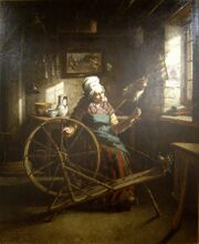 Louisa May Alcott, most famous as the author of Little Women, wrote a collection of short stories called Spinning-Wheel Stories,[47] which were not about spinning wheels but instead meant to be read while engaging in the rather tedious act of using a spinning wheel.
