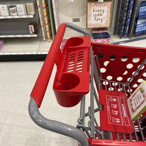 Some retailers, such as Target, have begun using carts fully made of recycled plastic with the only metal part being the wheel axles, drawing away from the established metal cart design. Target's cart has won design awards for its improved casters, interchangeable plastic parts to simplify repairs, and handles that improve maneuverability.[31] Other cart designs also incorporate additional features such as a cup holder for cold or hot drinks or a bouquet of flowers, along with other features such as a secure shelf for a tablet computer or mobile phone to allow the use of mobile coupons and circulars, or as seen in an all-plastic design created for the Wisconsin-based Festival Foods and also used by Whole Foods Market by Bemis Manufacturing Company, all of these features, along with extra rungs on the side rail designed to attach plastic bags or carry handles for beverages. Smaller half-sized carts for smaller shopping trips have also become common.[32]