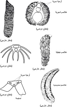الشكل (1) الأنماط المختلفة من غلاصم عُشاريات الأرجل