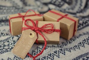 عقد فراشة مزدوجة على مجموعة من علب الهدايا.