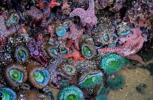 أحواض مد وجزر تضم نجوم بحر وشقائق النعمان.