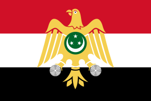 - عام 1958 عقب اعلان الوحدة بين مصر وسوريا اصبح هذا العلم علمًا للجمهورية العربية المتحدة بعد ازالة النسر و وضع نجمتان خضراوان.