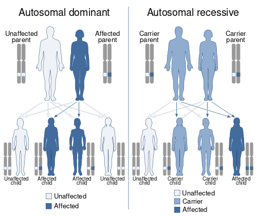 Autosomal dominant and autosomal recessive inheritance, the two most common Mendelian inheritance patterns. An autosome is any chromosome other than a sex chromosome.