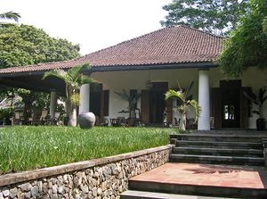 ڤيلا هجين بين الطرازين الجاوي و"الإندو-أوروپي" النيوكلاسيكي. لاحظ شكل السقف الجاوي والتشابهات العامة بالكوخ الجاوي.
