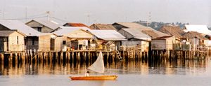 قرية صيادين من منازل على أعمدة في أرخبيل رياو