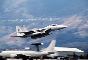 ![]() An F-15C is met by maintenance personnel at Aviano Air Base during Operation Deny Flight | |||||||