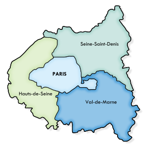 There is an exception in Paris in the Île-de-France region and its three surrounding departments, known as the Petite Couronne ("Small Crown"): Hauts-de-Seine to the west, Seine-Saint-Denis to the northeast and Val-de-Marne to the southeast. These departments are administered by an additional separate unitary prefecture for law enforcement and security purposes, a Prefecture of Police (فرنسية: préfecture de police), known as the Paris Police Prefecture, a situation inherited from the Paris Commune of 1871. The power of law enforcement is usually vested in the mayor in other communes. This power is held by the Prefect of Police of Paris in the Petite Couronne.