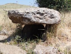 It is noteworthy that the region north of the river Jabbok, or Bashan, "the land of Rephaim", contains hundreds of megalithic stone tombs (dolmen) dating from the 5th to 3rd millennia BC. In 1918, Gustav Dalman discovered in the neighborhood of Amman, Jordan (Amman is built on the ancient city of Rabbah of Ammon) a noteworthy dolmen which matched the approximate dimensions of Og's bed as described in the Bible. Such ancient rock burials are seldom seen west of the Jordan river, and the only other concentration of these megaliths are to be found in the hills of Judah in the vicinity of Hebron, where the giant sons of Anak were said to have lived (Numbers 13:33).[3]