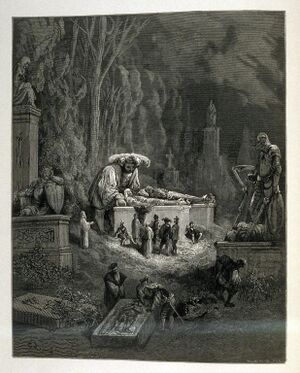 In 1974, Wolfgang Röllig published a Phoenician inscription from Byblos (Byblos 13) which he argued it contained a reference to a deity named "Og".[4] According to Röllig, it appears in a damaged 7-line funerary inscription that Röllig dates to around 500 BC, and appears to say that if someone disturbs the bones of the occupant, "the mighty Og will avenge me." Frank Moore Cross disputed Röllig's interpretation, proposing that the line of the inscription in question reads instead "my decrepit/mouldering bones".[5]